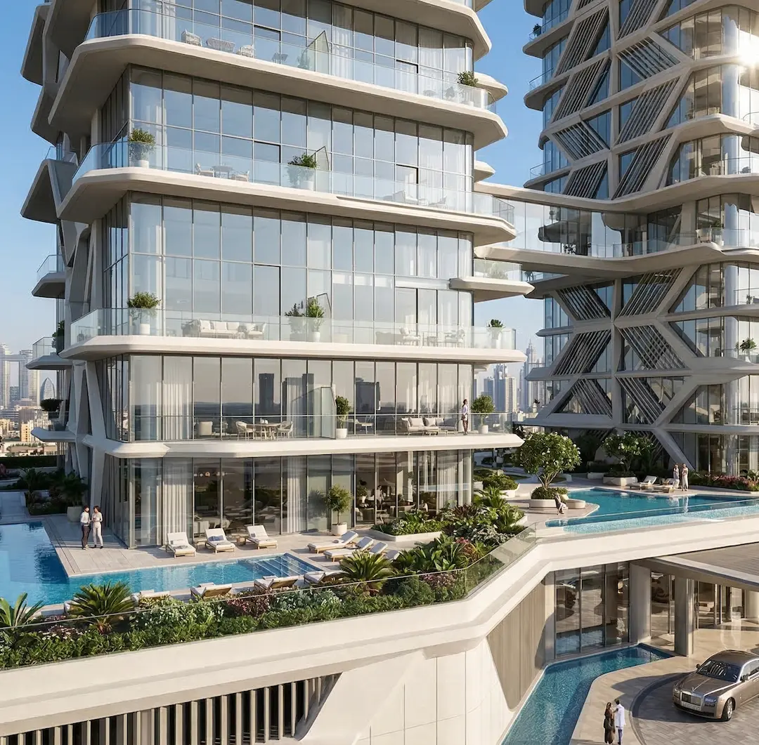 Discover handpicked UAE off‑plan opportunities with key investment highlights and project visuals.